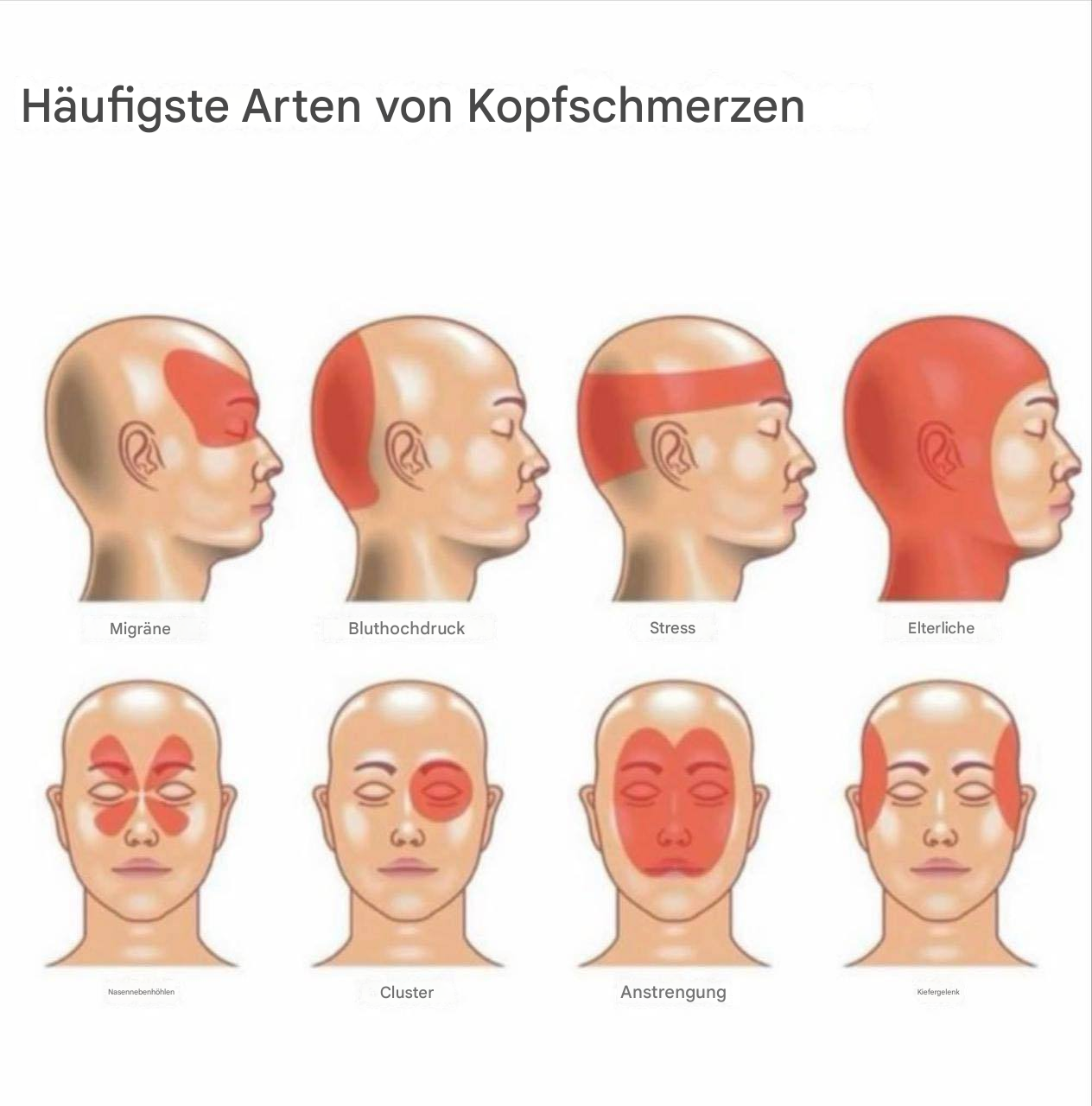 🤯 Die häufigsten Arten von Kopfschmerzen und ihre Ursache! ⚡ Migräne Wo: Auf einer Seite des Kopfes, hinter dem Auge oder an der Schläfe Anfühlt sich an: Pochender, starker Schmerz Weitere Anzeichen: Übelkeit, Licht-/Geräuschempfindlichkeit 💓 Hypertonie-Kopfschmerzen Wo: Im Hinterkopf Anfühlt sich an: Dumpfer, pulsierender Schmerz Hinweis: Morgens oft schlimmer; Im Zusammenhang mit Bluthochdruck 😣 Spannungskopfschmerz … Read more